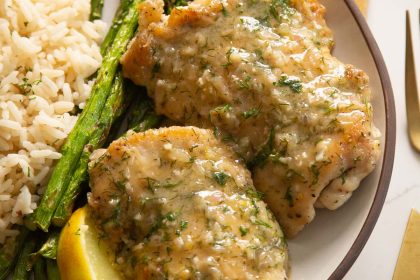 Juicy chicken thighs coated in a glossy, flavour-packed lemon and dill sauce â this lemon dill chicken is quick, easy and perfect for weeknights or guests. Quite frankly, this dinner has no business...