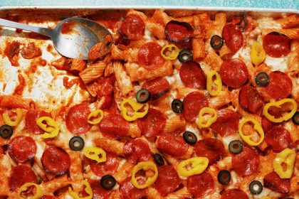 Picture the ideal take-out pizza: tangy sauce, gooey cheese, glistening pepperoni cups, a few shakes of dusty oregano and crushed red pepper flakes. It’s all I ever really want on a Saturday night, ev...