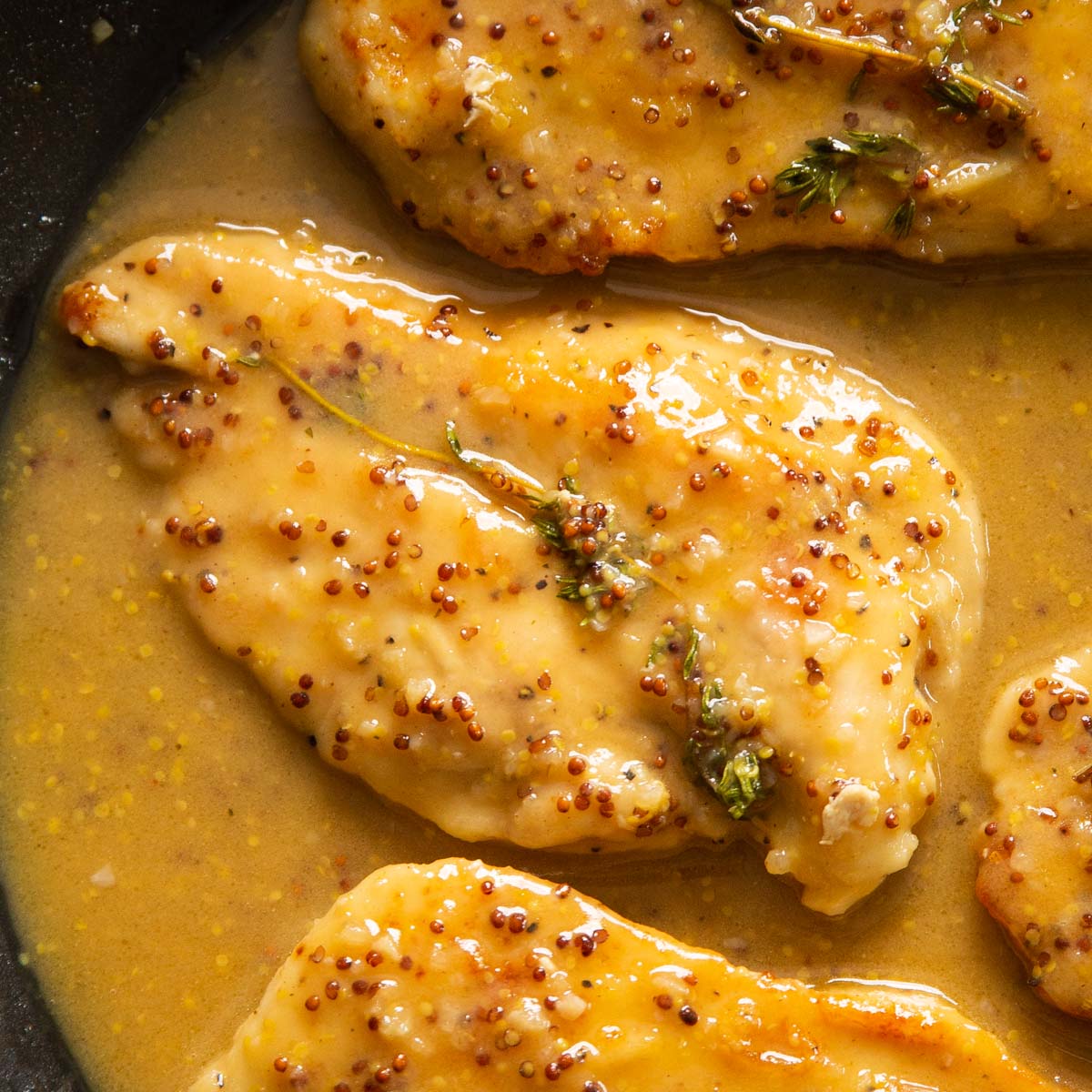Tender pan-fried chicken in a glossy honey mustard sauce that’s sweet, tangy and perfect for an easy weeknight dinner.